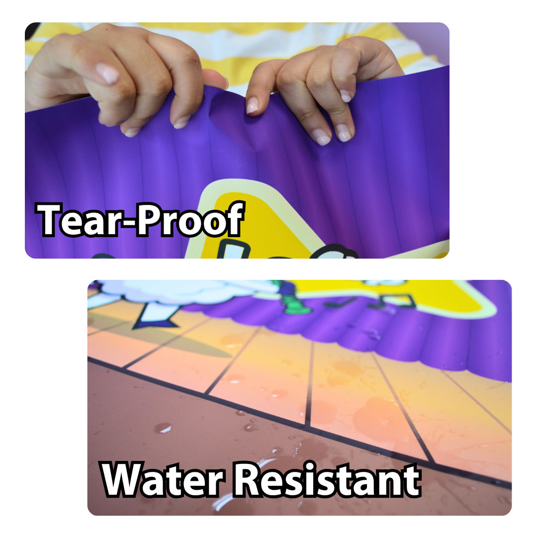 The poster is 18″ x 24″, printed on water-resistant, tear-resistant material, and safely rolled in a sturdy tube.